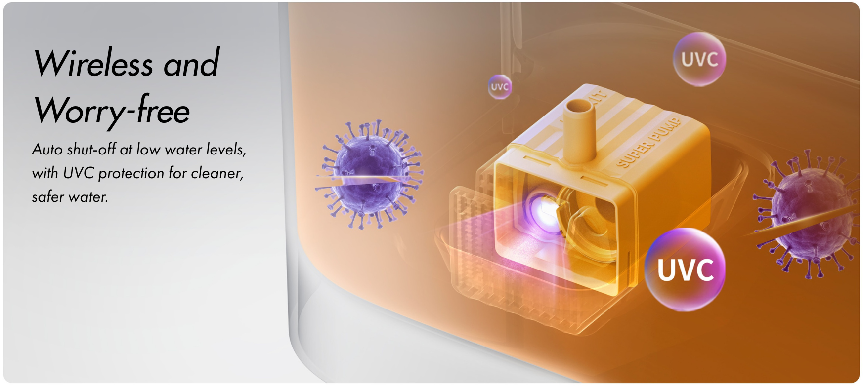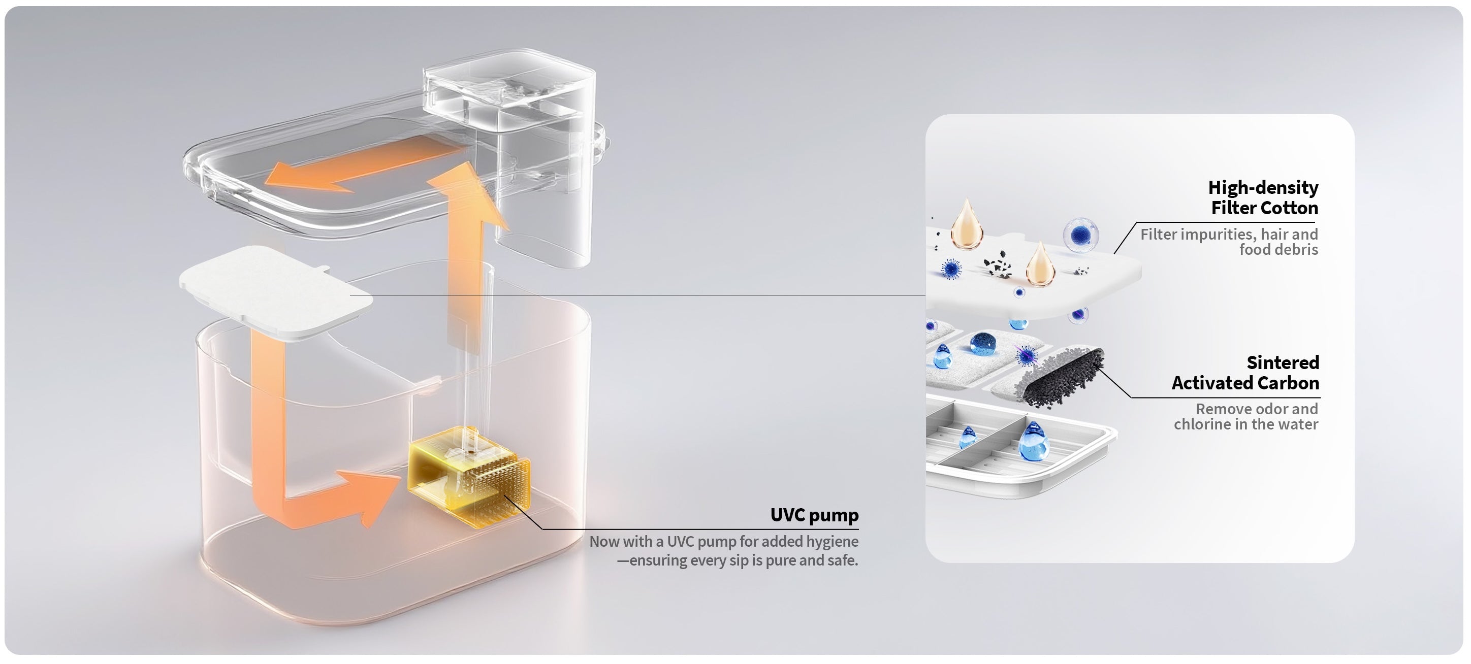 You and your pets can enjoy uninterrupted sweet dreams with the water fountain’s 26dB ultra-quiet performance.