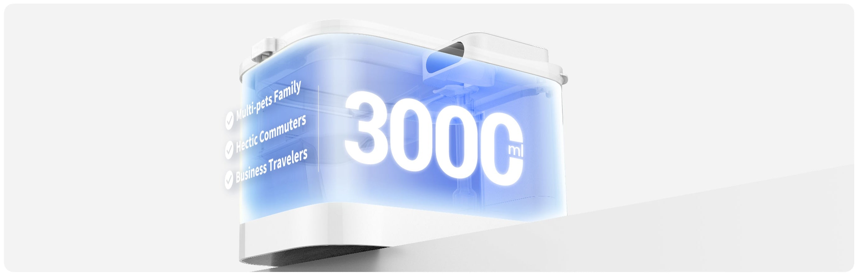 With 101 oz/3000 ml capacity, our substantial reservoir frees your hands from frequent water refills and ensures furry friends have access to plenty of fresh water throughout the day.