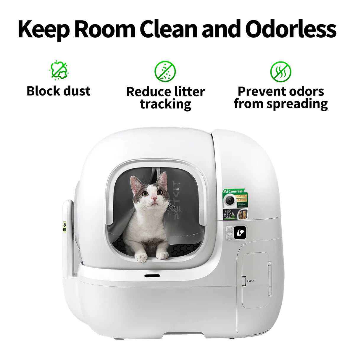 Designed to fit the entrance of the litter box, the curtain effectively blocks dust,reduces litter tracking, and ensures optimal odor isolation, helping to maintain a clean and fresh room.