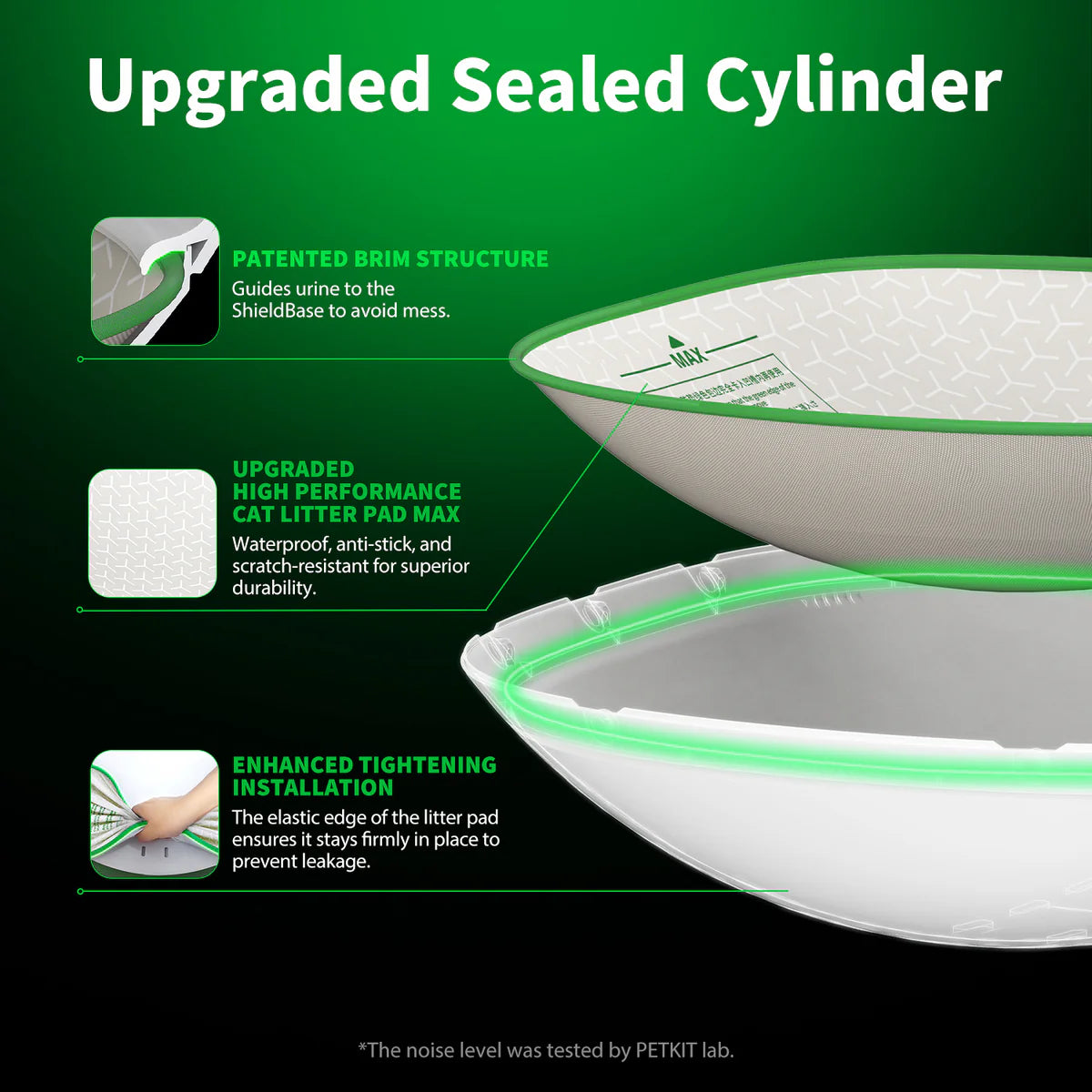 PURAMAX 2 upgrades the cylinder with a seamless ShieldBase to ensure 360° seal, reducing the chores of frequent cleaning. No worries if your cats like to urinate along the edges or in elevated positions.
