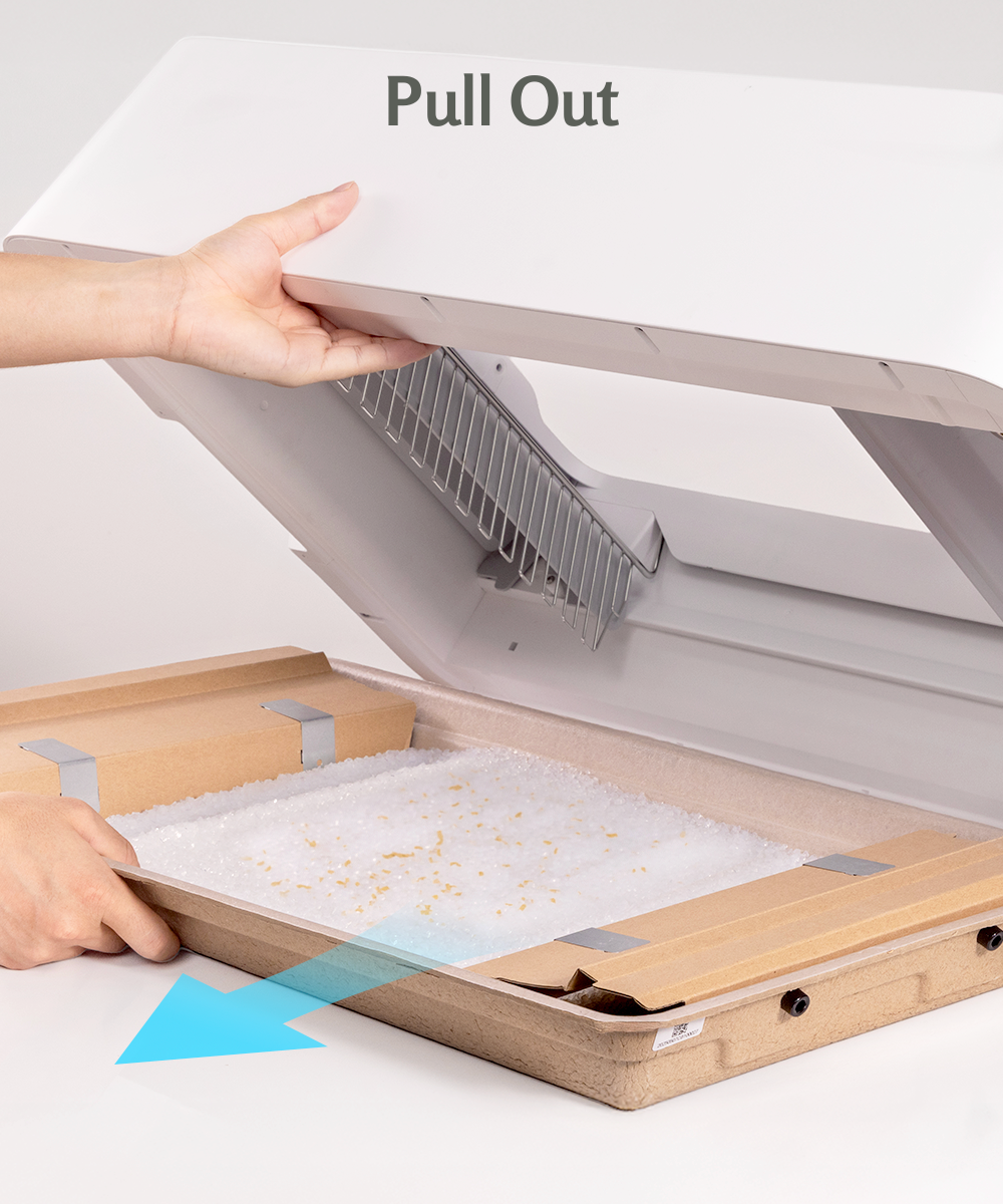 Two-way raking ensures thorough cleaning without leaving any solid waste behind. The dual waste trap, offering plenty of storage space, efficiently seals away solid waste and odors. Plus, with 30 days of free scooping, maintaining the litter box has never been easier.