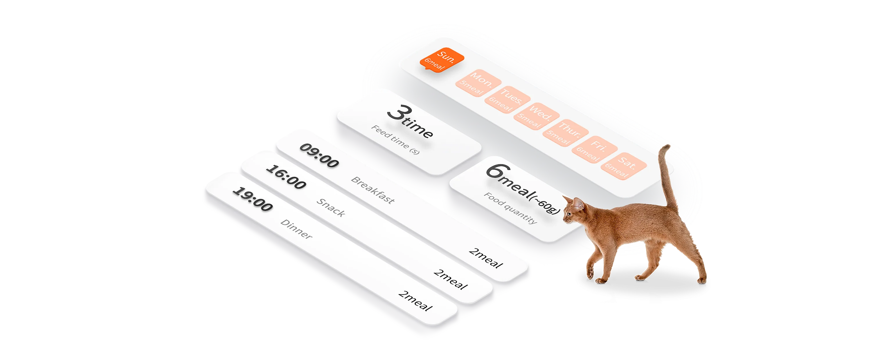 Precise portion control (up to 5 portions per meal) helps pets develop healthy eating habits. Extra feeding is also available on the app to meet dietary needs.