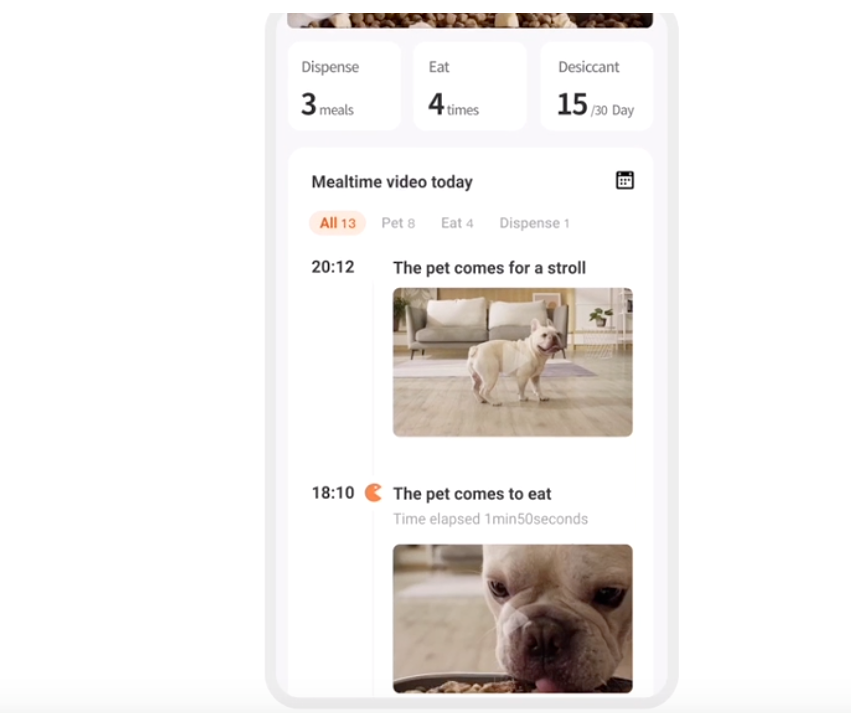 The auto-tracking system effortlessly captures, records, and categorizes videos according to your pets' activities, from playful antics to satisfying meals, providing you with a clear overview of their activities.